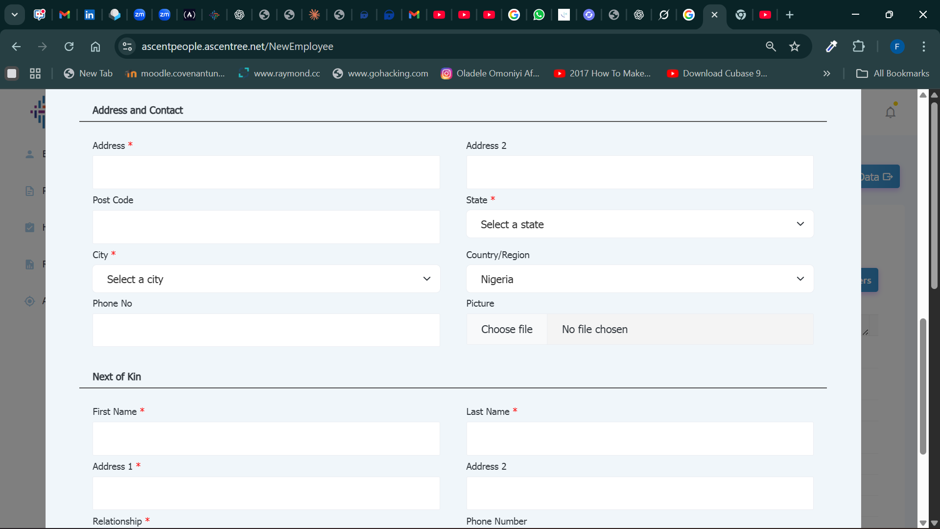 ii. There are 3 tabs on the employee card with sections with the relevant fields.
