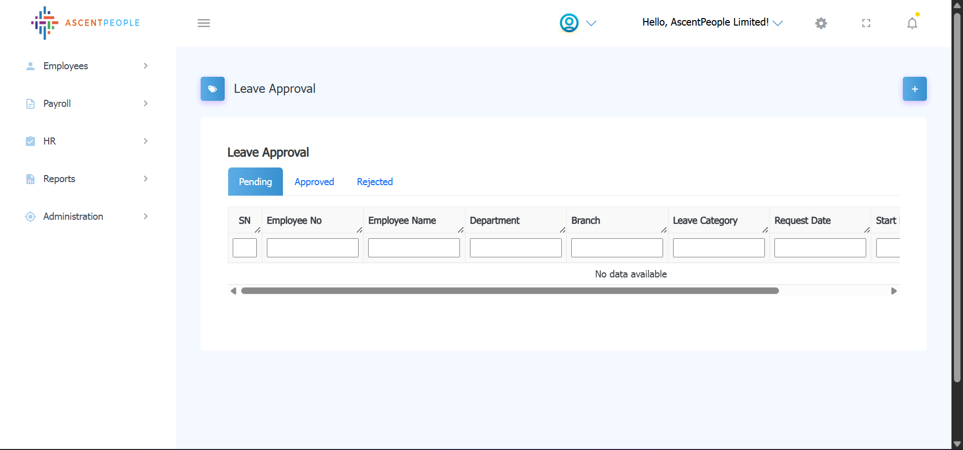 Requests come to this page and can be approved or rejected. The tabs are to see the pending, approved and rejected leave requests.