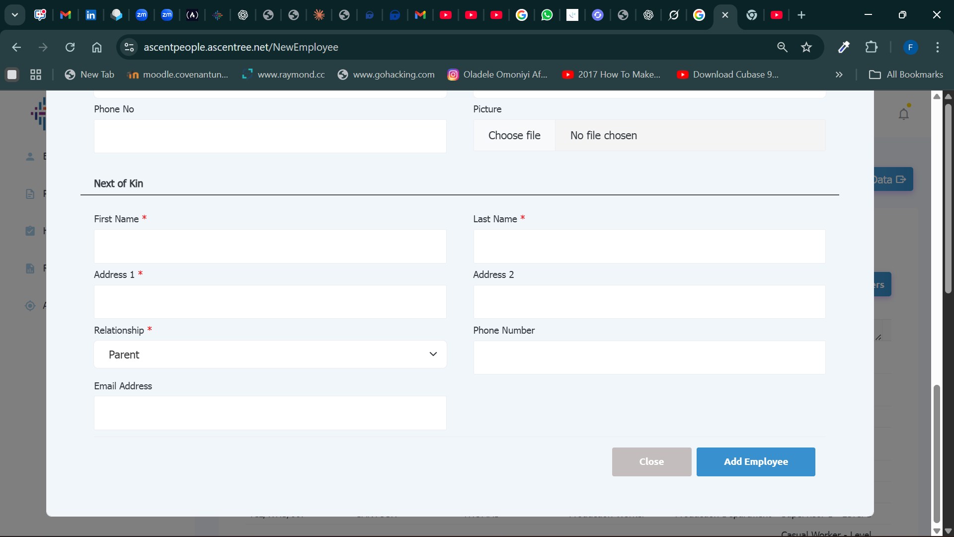 iii. Once these sections are filled then create New Employee.