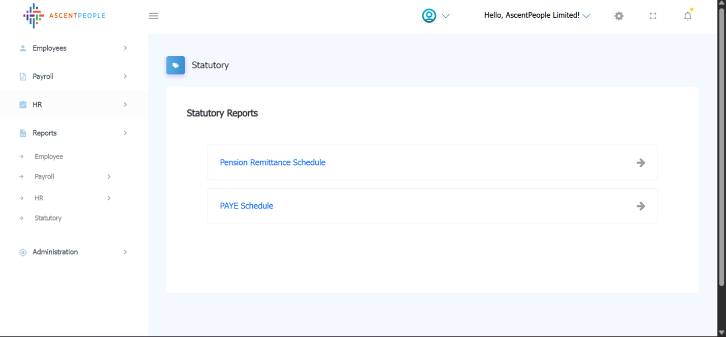 These are the statutory reports (Pension remittance Schedule and PAYE Schedule).